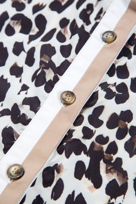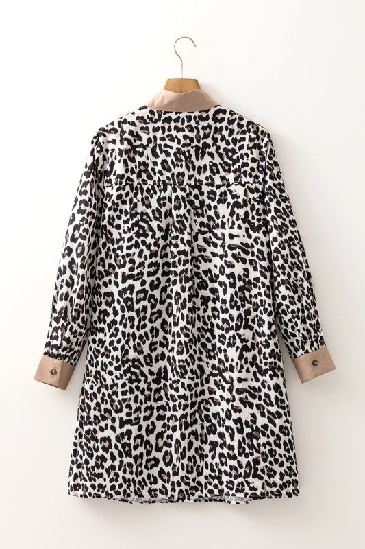 Make Khalani Long Sleeve Flared Dress your grab-and-go choice for effortless, everyday dressing. The contrast button striped collar and sleeve cuffs add extra chic detail. This leopard dress is to show your wild free spirit and fashion sense. The half placket design and collar make it convenient and elegant. This relaxed fit dress is friendly to any body shape. Material: 100%Polyester.