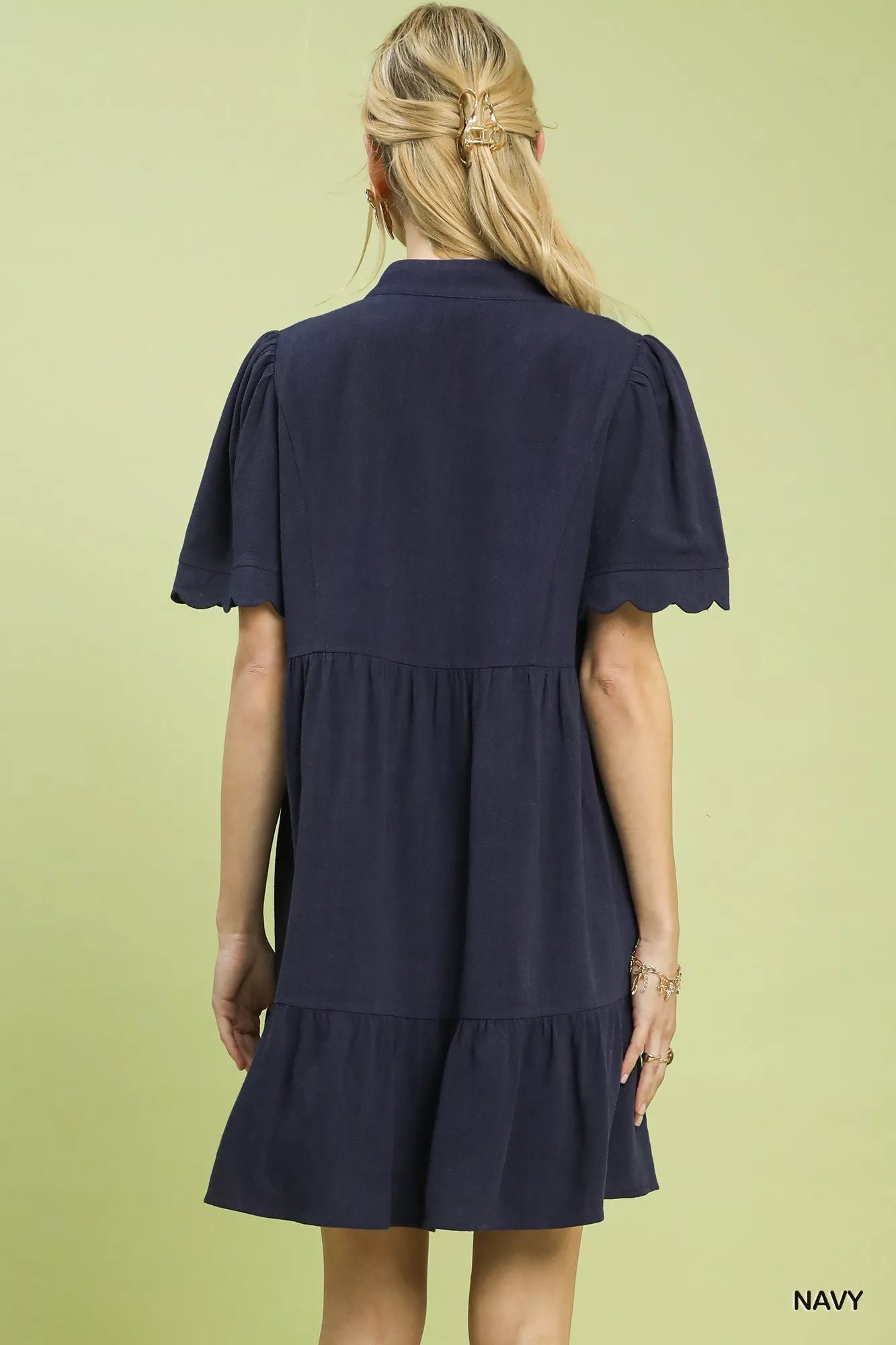 Umgee Linen Tiered Babydoll Dress with Scalloped Sleeves