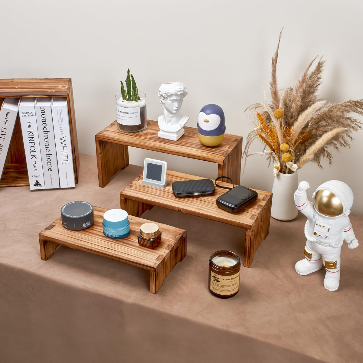 • PERFECT FOR ANY OCCASION: These wooden display risers are ideal for creating striking displays at weddings, birthdays, baby showers, trade shows, and other special events. The elegant design and varying sizes enhance the aesthetics of any setting, leaving a lasting impression on your guests