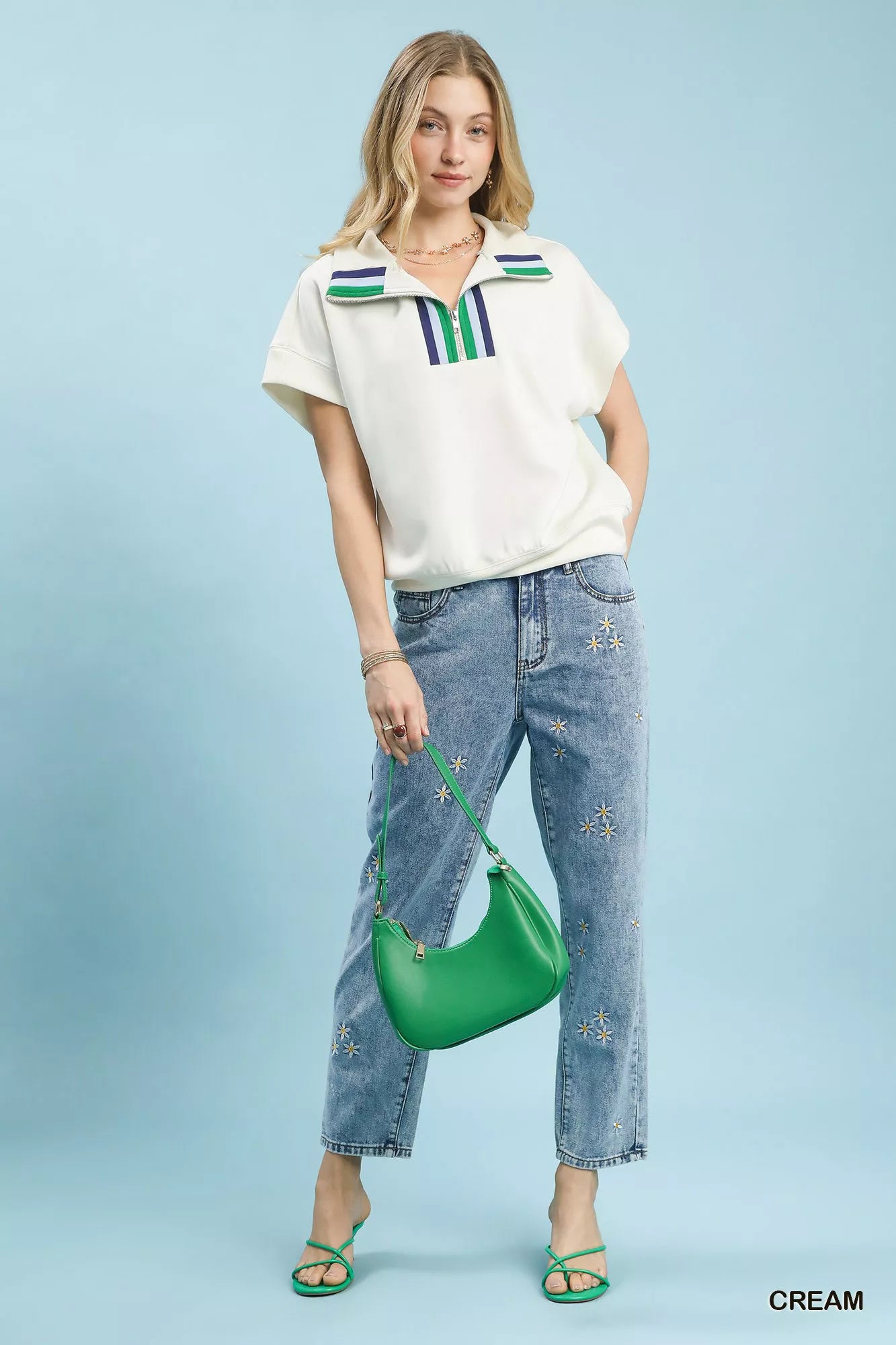 The Striped Half-Zip Knit Top is a stylish and versatile piece that will elevate your wardrobe. Featuring a convenient half-zip front, this top offers both functionality and a trendy touch. Crafted from lux knit fabric, it ensures comfort and quality. The contrast detail adds a modern and eye-catching element to the classic striped design. While not lined, this top is perfect for layering or wearing on its own as a standalone statement piece. Stay chic and on-trend with the Striped Half-Zip Knit Top for a fashionable addition to your collection.
