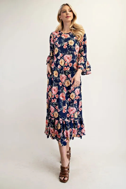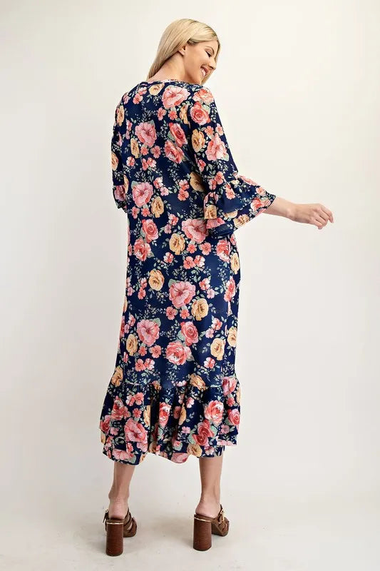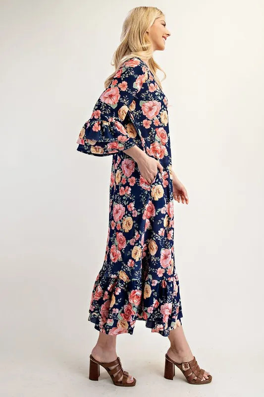Celeste Full Size Soft Floral Ruffle Trim Dress Plus Size