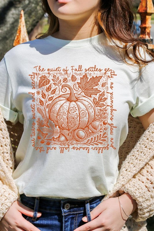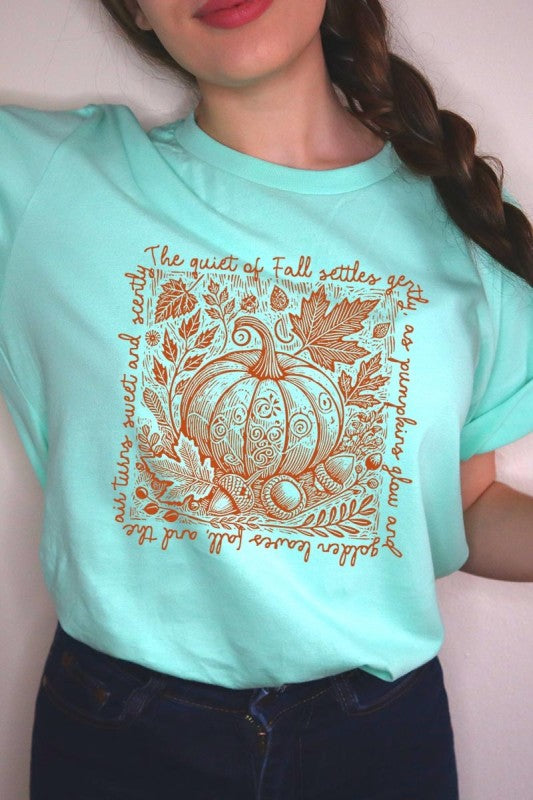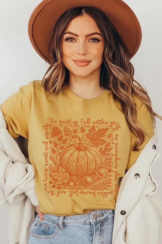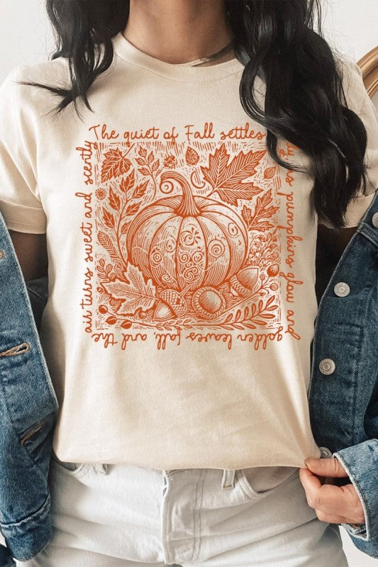 fall pumpkin shirt, autumn graphic tee, cozy fall shirt, pumpkin season top, botanical fall design, thanksgiving outfit tee, rustic autumn shirt, pumpkin woodcut tee, harvest shirt, fall quote