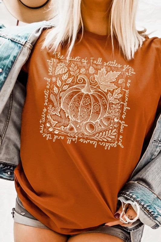 fall pumpkin shirt, autumn graphic tee, cozy fall shirt, pumpkin season top, botanical fall design, thanksgiving outfit tee, rustic autumn shirt, pumpkin woodcut tee, harvest shirt, fall quote Graphic Tee.