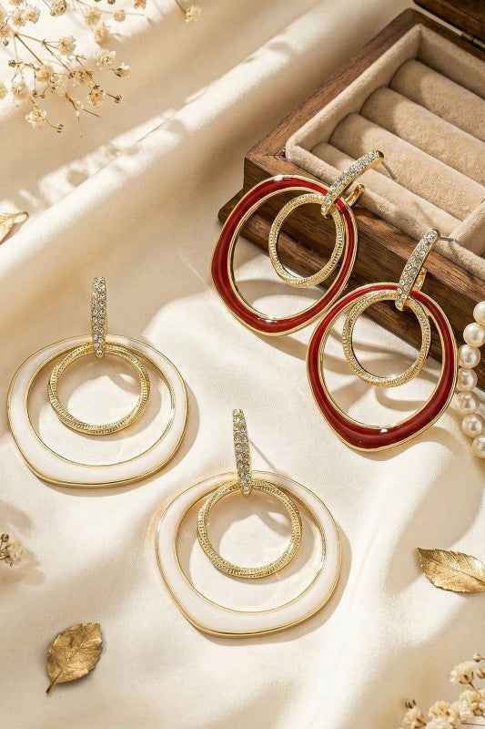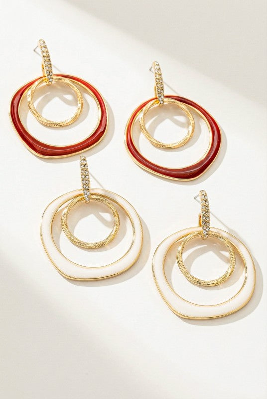 The outer hoop is finished in smooth enamel with an organic, uneven shape that creates a contemporary, sculptural look.