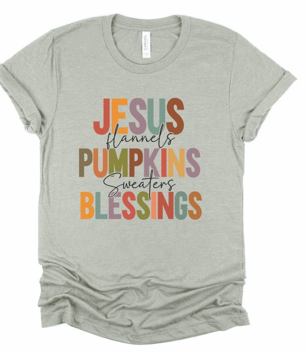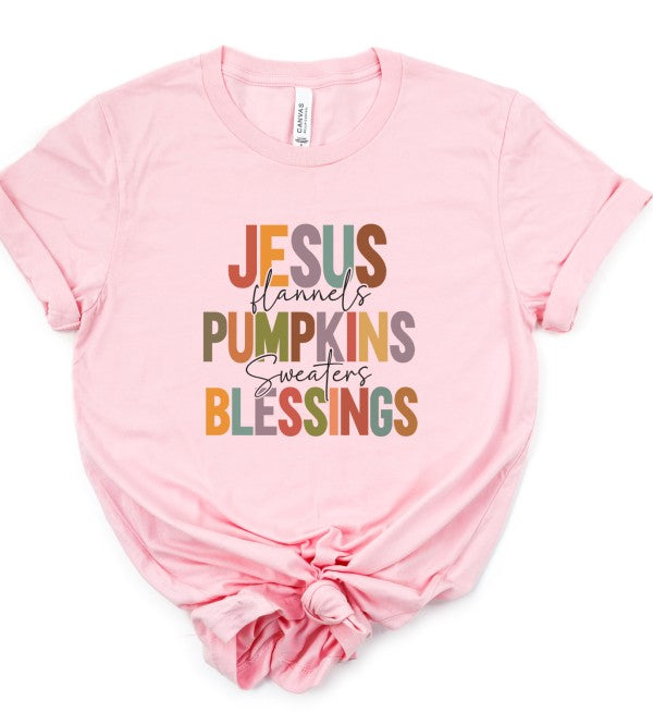 Jesus Flannels Pumpkins Sweaters Blessings Graphic Tee