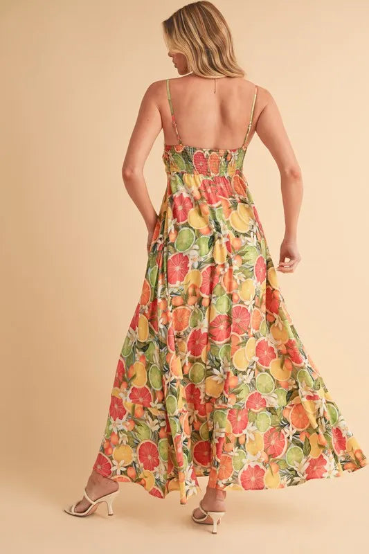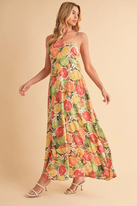 Aemi + Co Fruit Print Square Neck Maxi Cami Dress