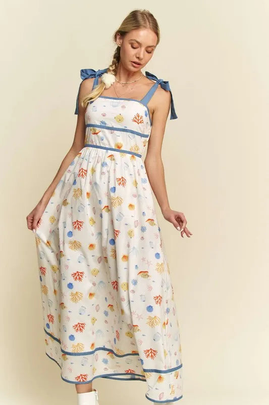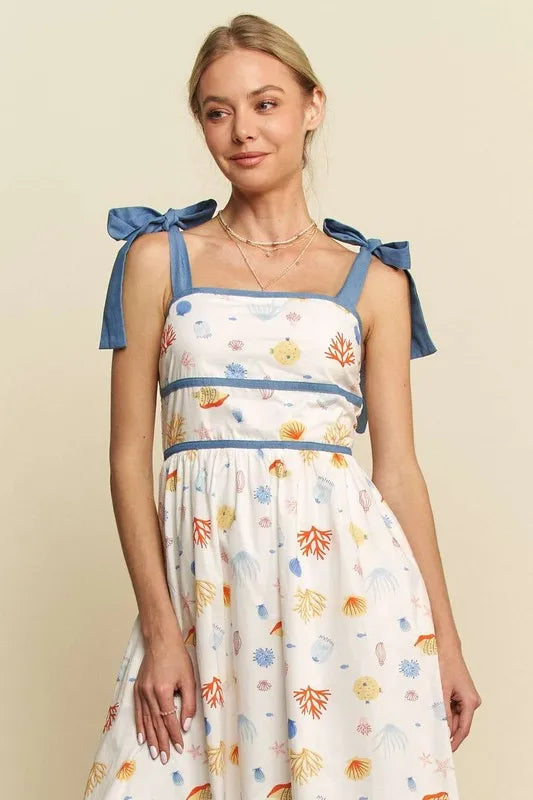 Davi & Dani Denim Binding Detail Smocking Summer Maxi Dress