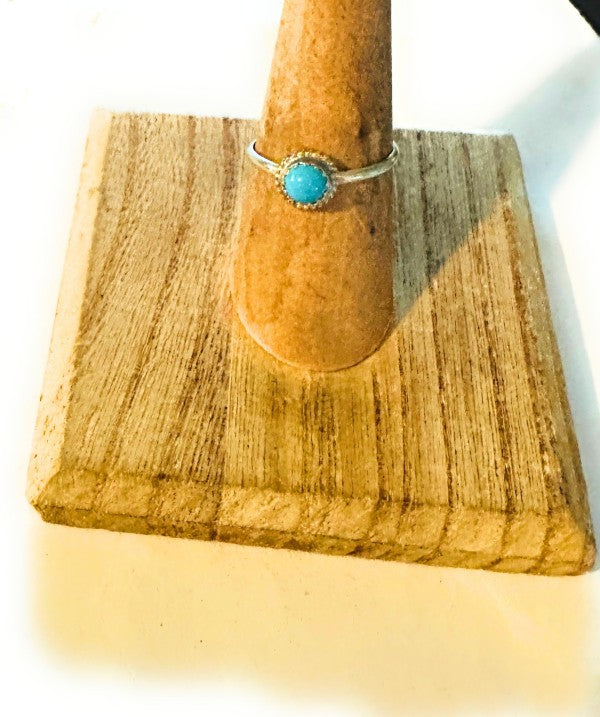 Gorgeous Handcrafted Turquoise and Sterling Silver Stacker Ring. Great ring for any collection! Ring measures just over 1/4 of an inch wide. Stones are natural and may vary.