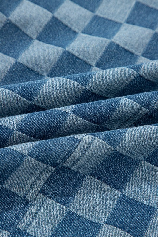 Jessie Hem Checkered Mini Dress is the piece you'll reach for when you want to look put together in seconds. This denim dress is classic and fashionable with checkered pattern. The frayed trim adds a fashion-forward edge. The stitched patchwork adds extra chic modern detail to this chambray dress. The shift fit style is flattering for most body shapes.