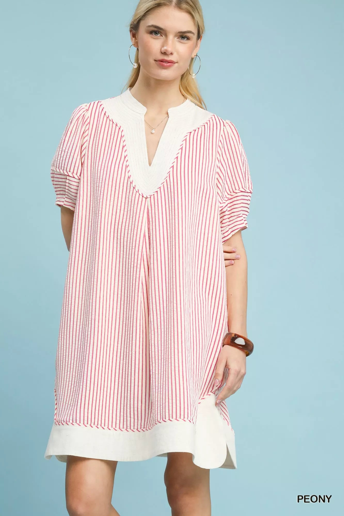 Umgee Pinstripe Shift Dress with Contrast Trim