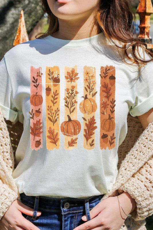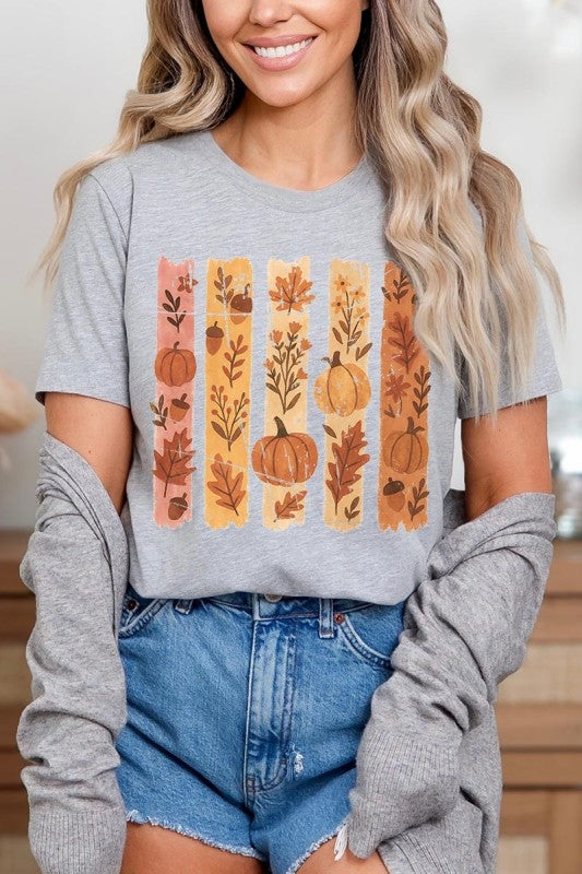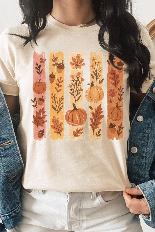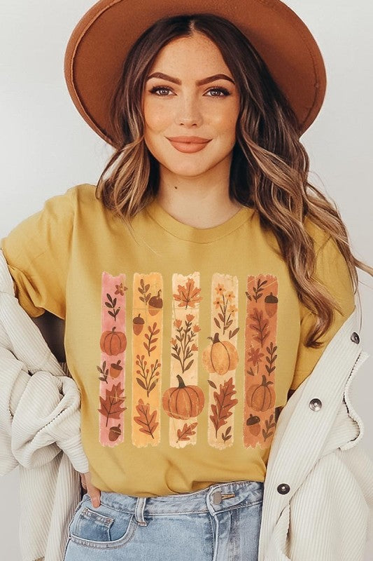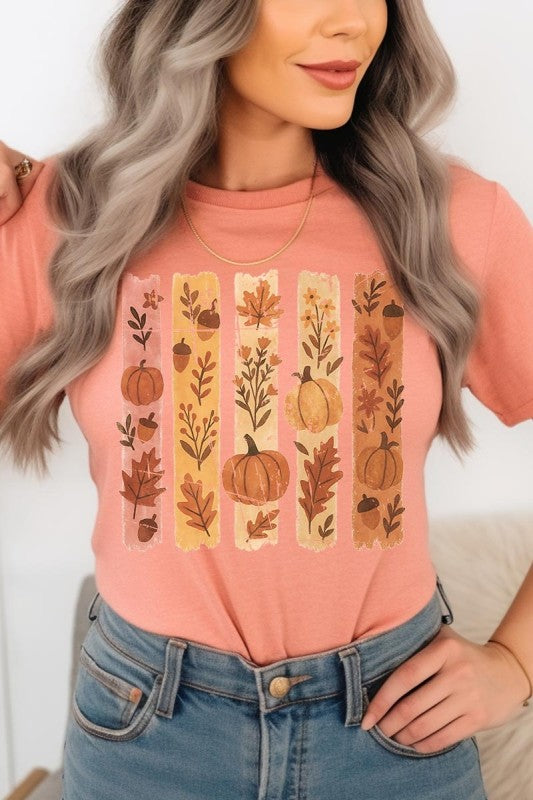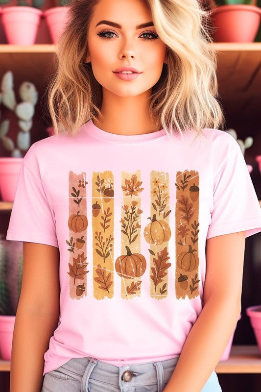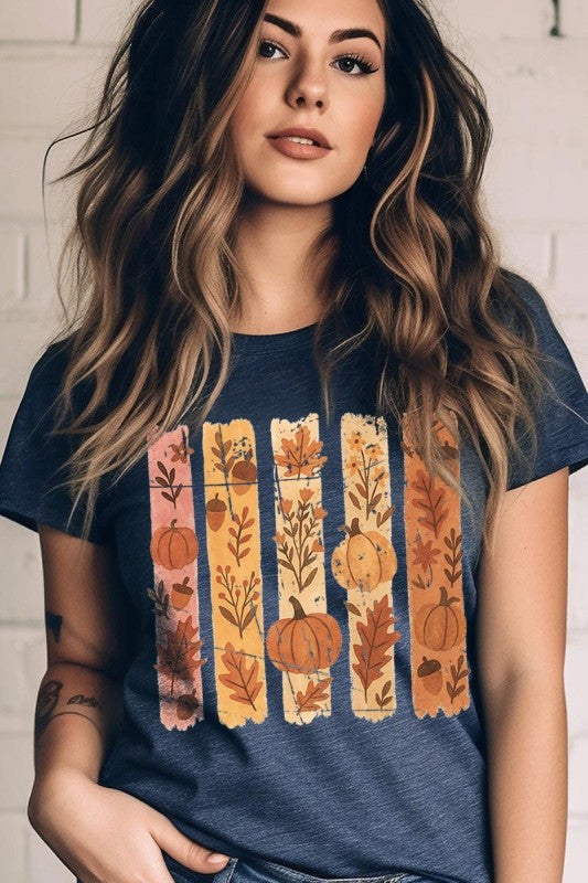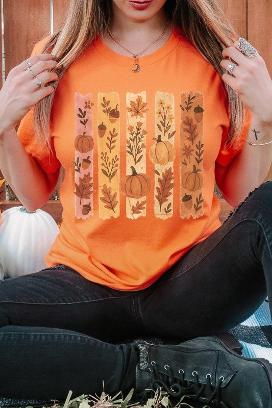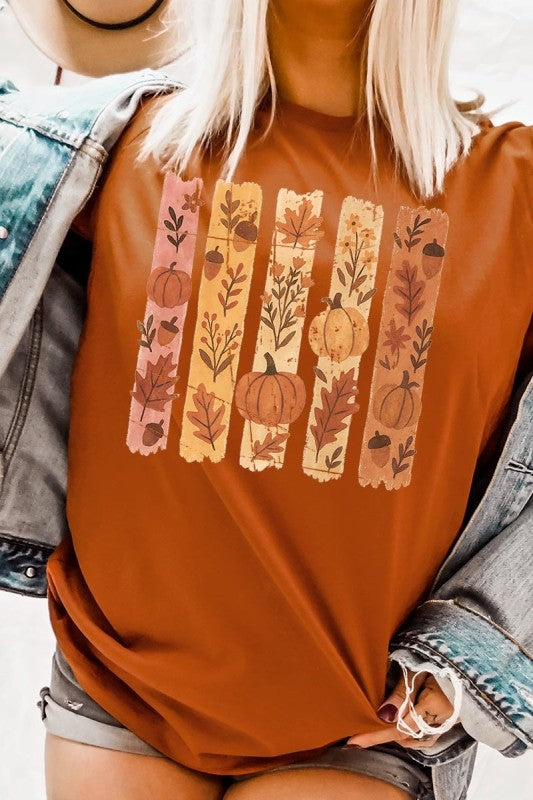 Brushstroke Boho Floral Fall, Retro Fall, Autumn Vibes, Pumpkin Season, Fall Wildflowers, Cozy season Graphic Plus Size Tee.