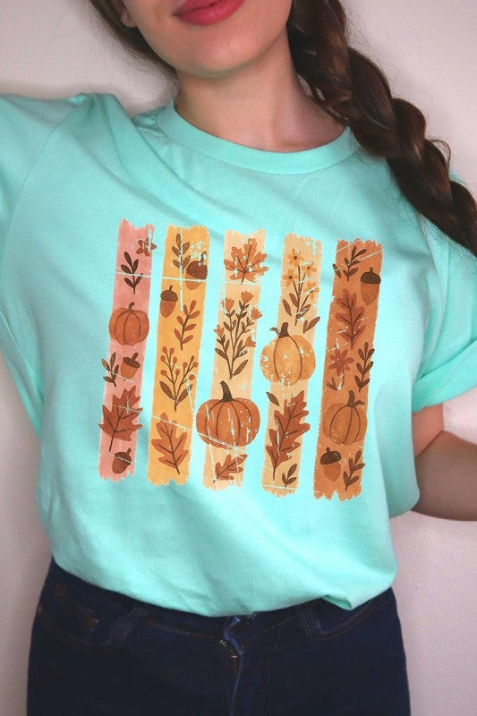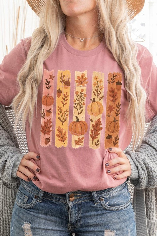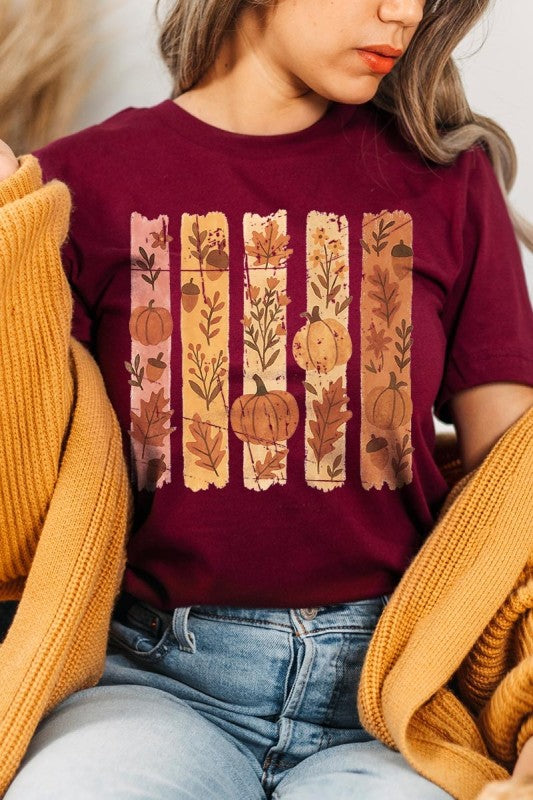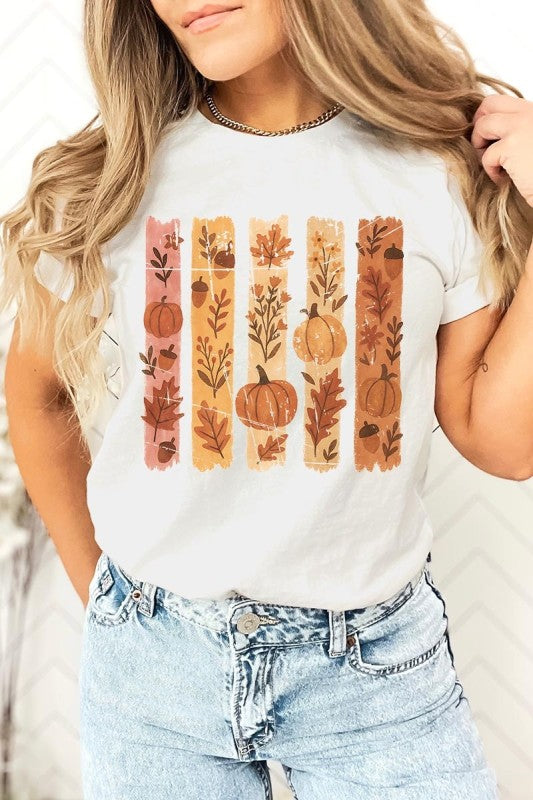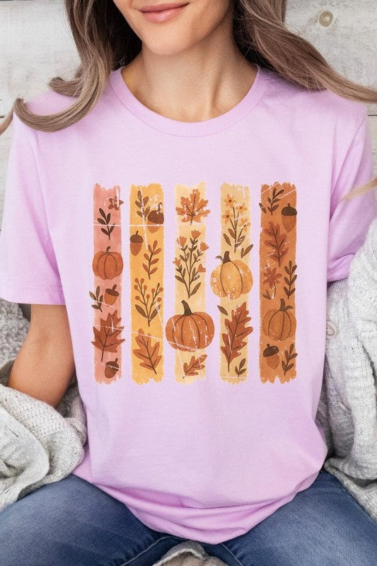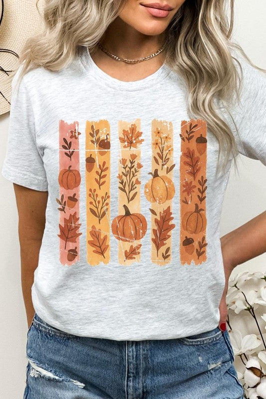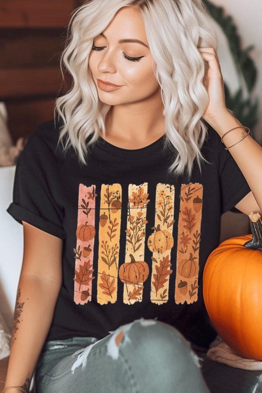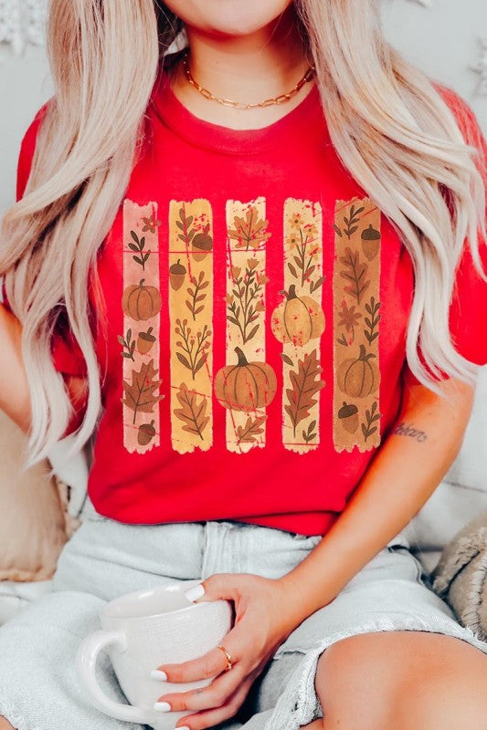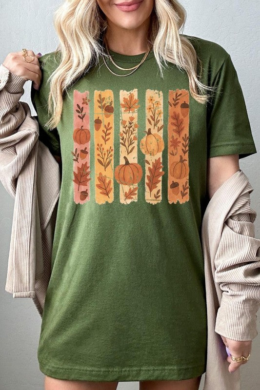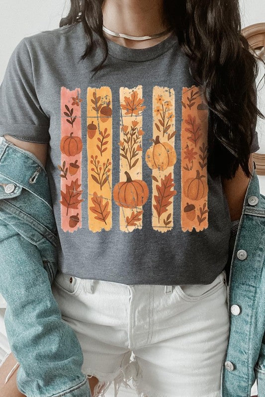 Brushstroke Boho Floral Fall, Retro Fall, Autumn Vibes, Pumpkin Season, Fall Wildflowers, Cozy season Graphic Plus Size Tee.