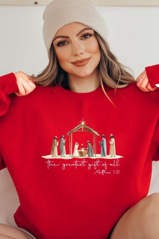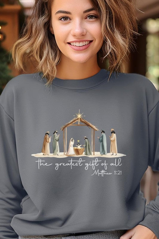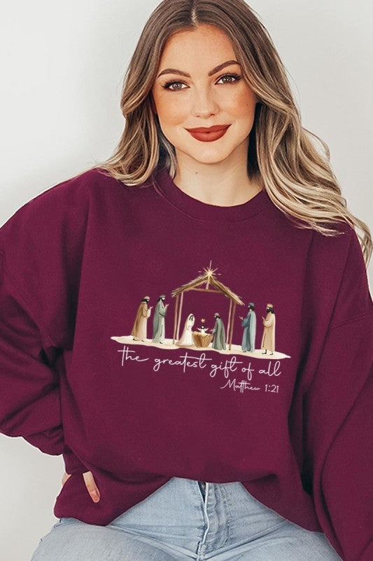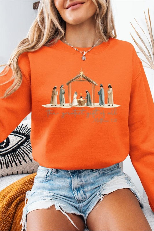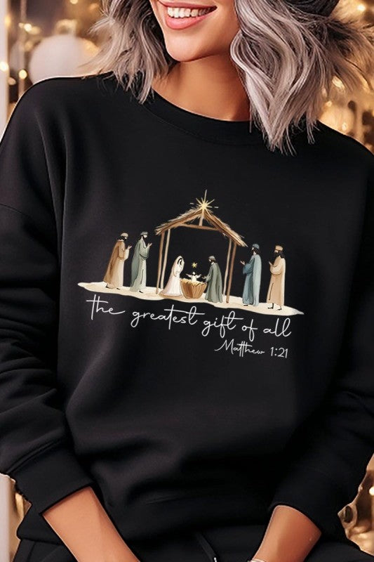 nativity christmas shirt, greatest gift tee, bible verse christmas top, jesus nativity shirt, christian holiday tee, religious christmas graphic, scripture christmas shirt, faith christmas Graphic Fleece Sweatshirt.